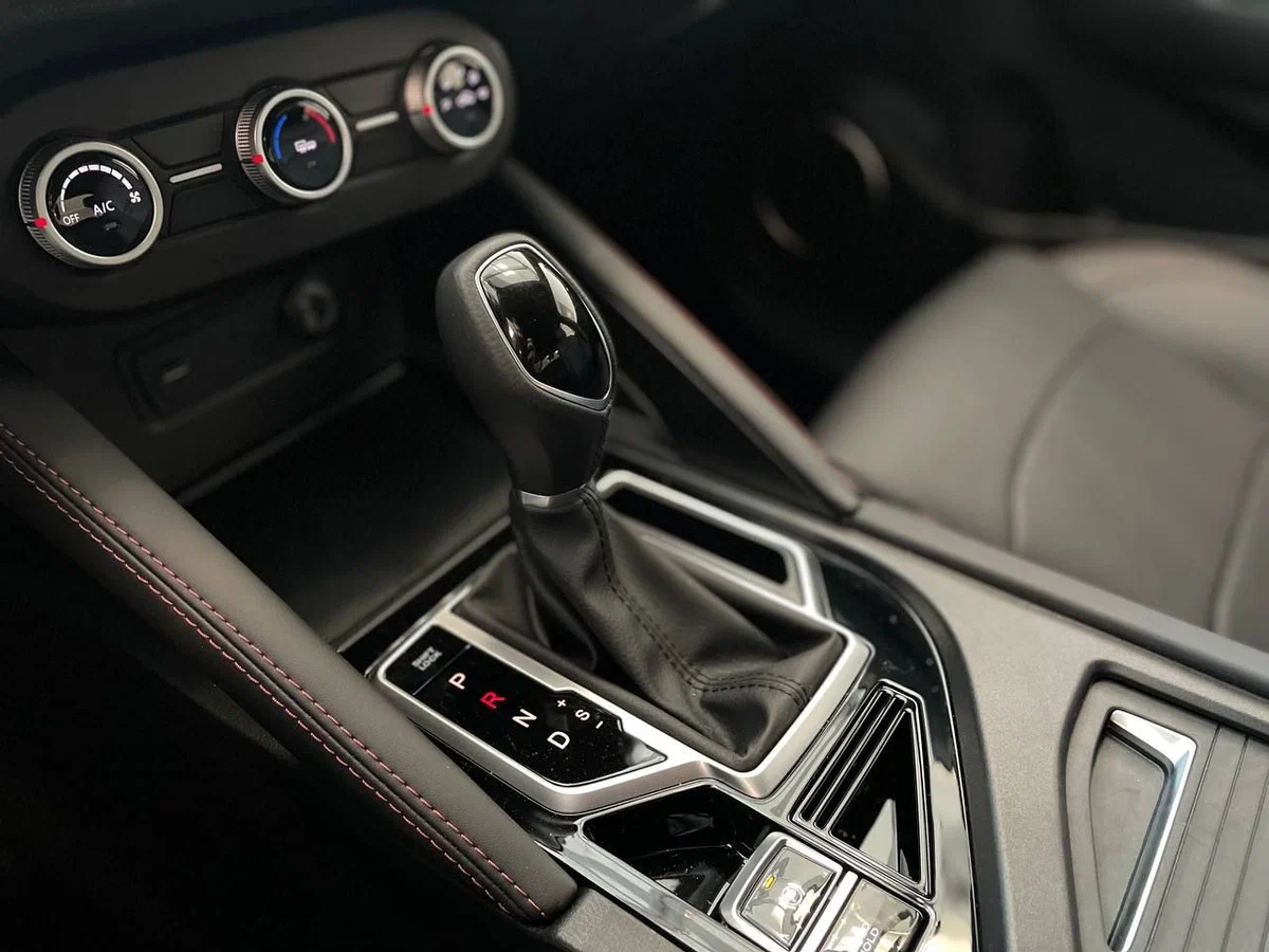 Центральная консоль черного цвета со вставками из эко-кожи с прострочкой